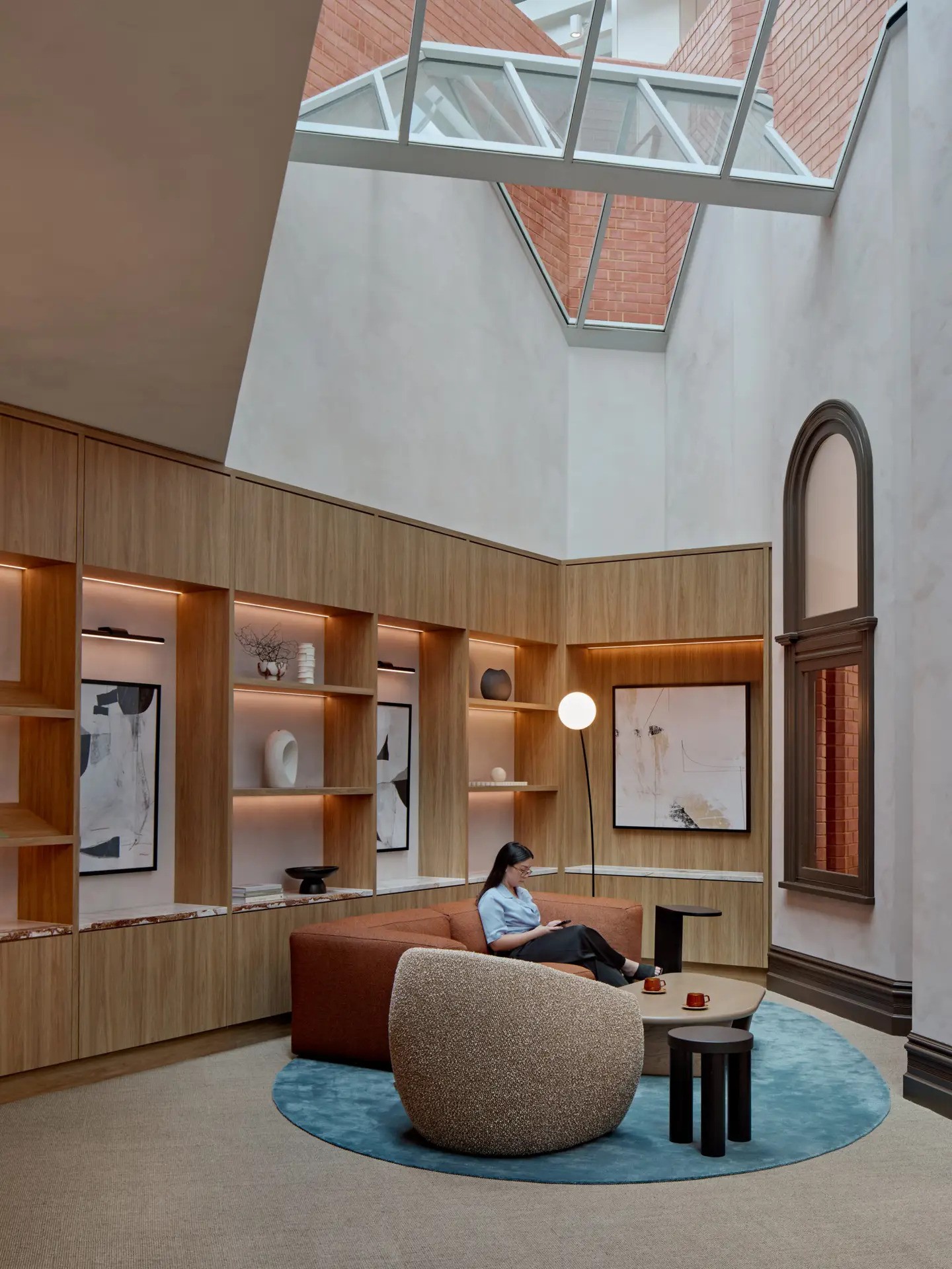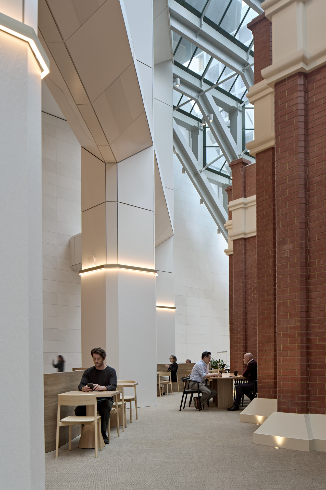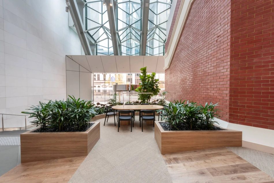 The refurbished lobby of The Palace Tower bridges spaces between the heritage-rich Palace Hotel with the modernist architecture of the 1970s tower. The Palace Tower completed in 1972, perching alongside Palace Hotel – is considered an important part of Perth’s post-war architectural and commercial landmark, embodying Perth’s transition from small town to a major urban centre during the latter half of the 20th century.